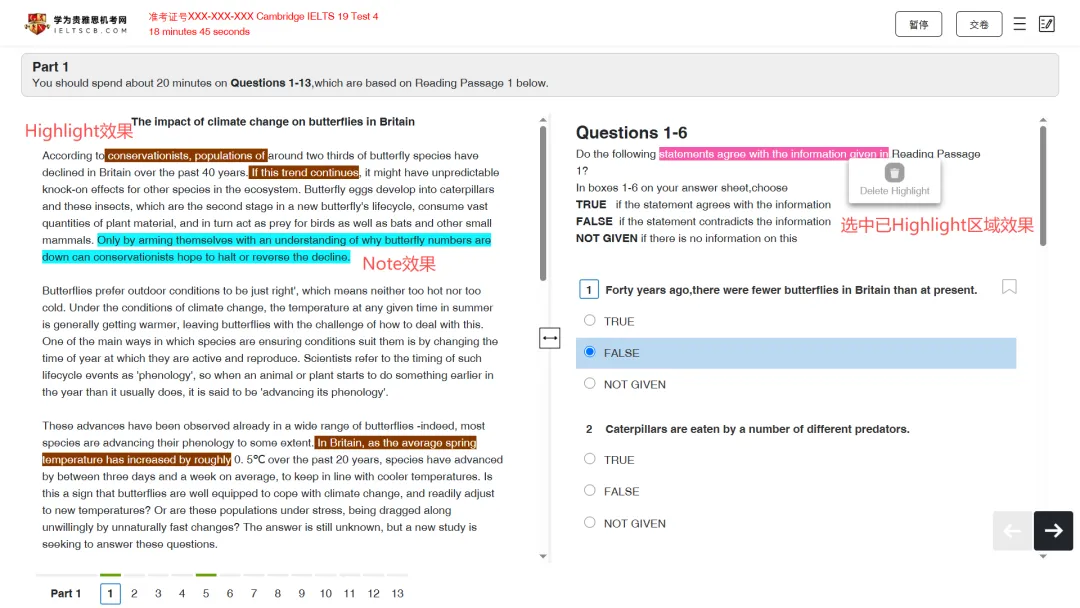 文章长度、题型不变,核心优势是无需反复翻页,可快速定位。操作上,用鼠标高亮题干关键词、文章定位词和逻辑连接词,还可添加注释;作答时先题干、后文章,带着关键词扫读,快速锁定答案,比纸笔考更高效。