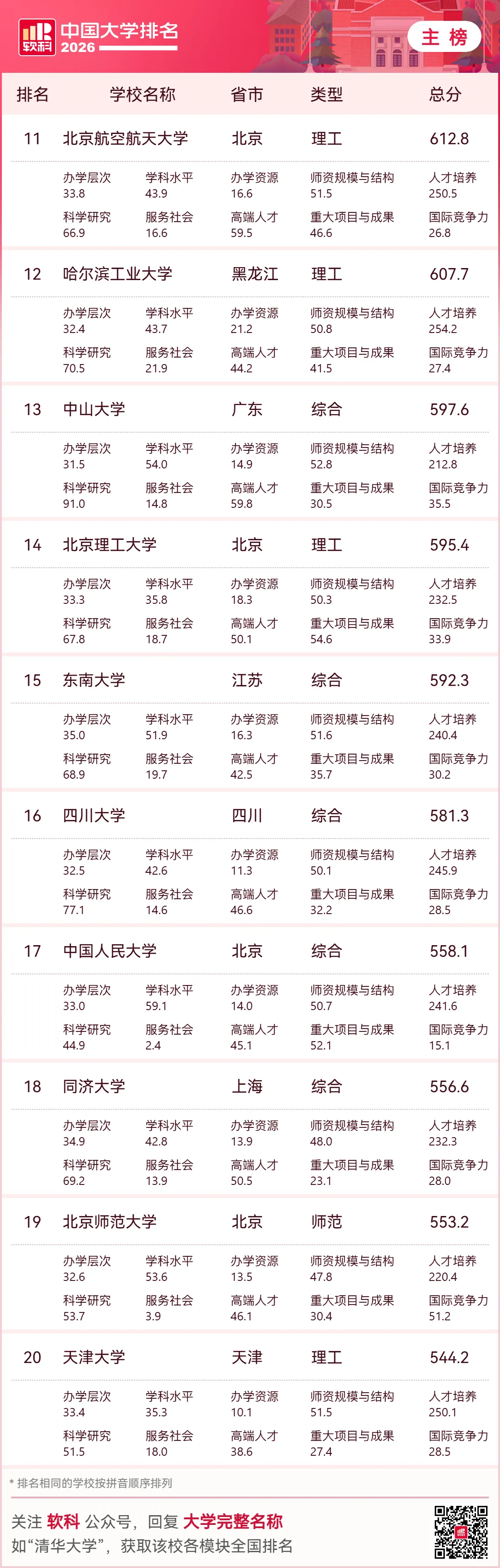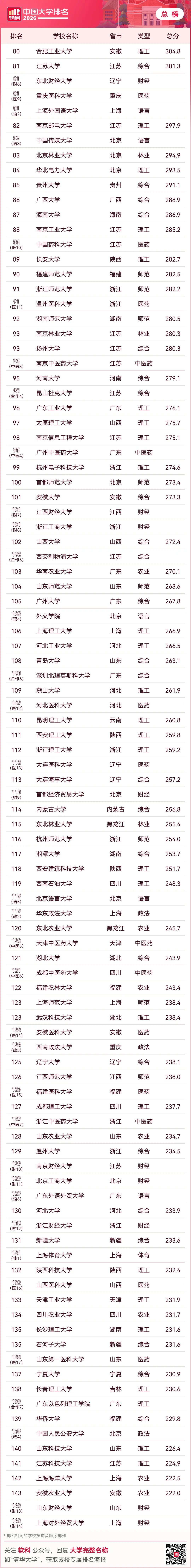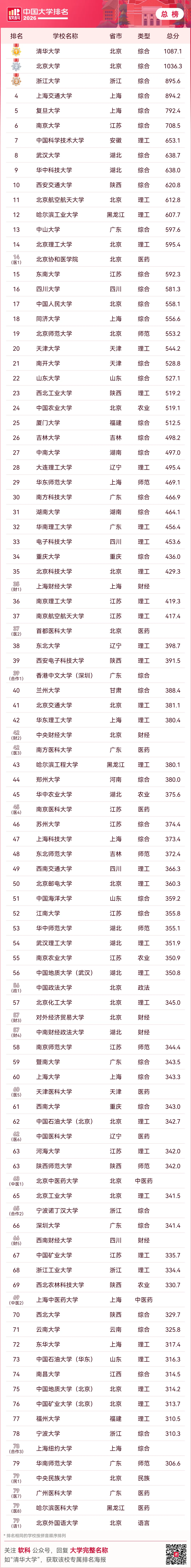 就在刚刚,高等教育专业评价机构软科重磅发布了“2026软科中国大学排名”!